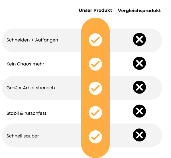 Integrierte Auffangschalen für Abfall und geschnittene Zutaten.