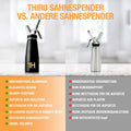Kompatibel & effizient: Nutzt handelsübliche N₂O-Kapseln; Thiru-Kapseln liefern bis zu 30 % mehr Aufschlagsvolumen.